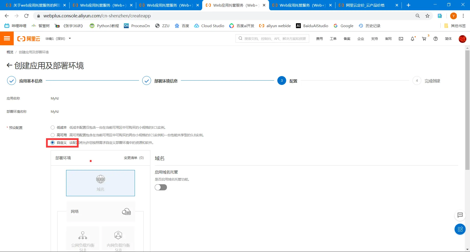 3.5自定义配置,域名可以此时配置