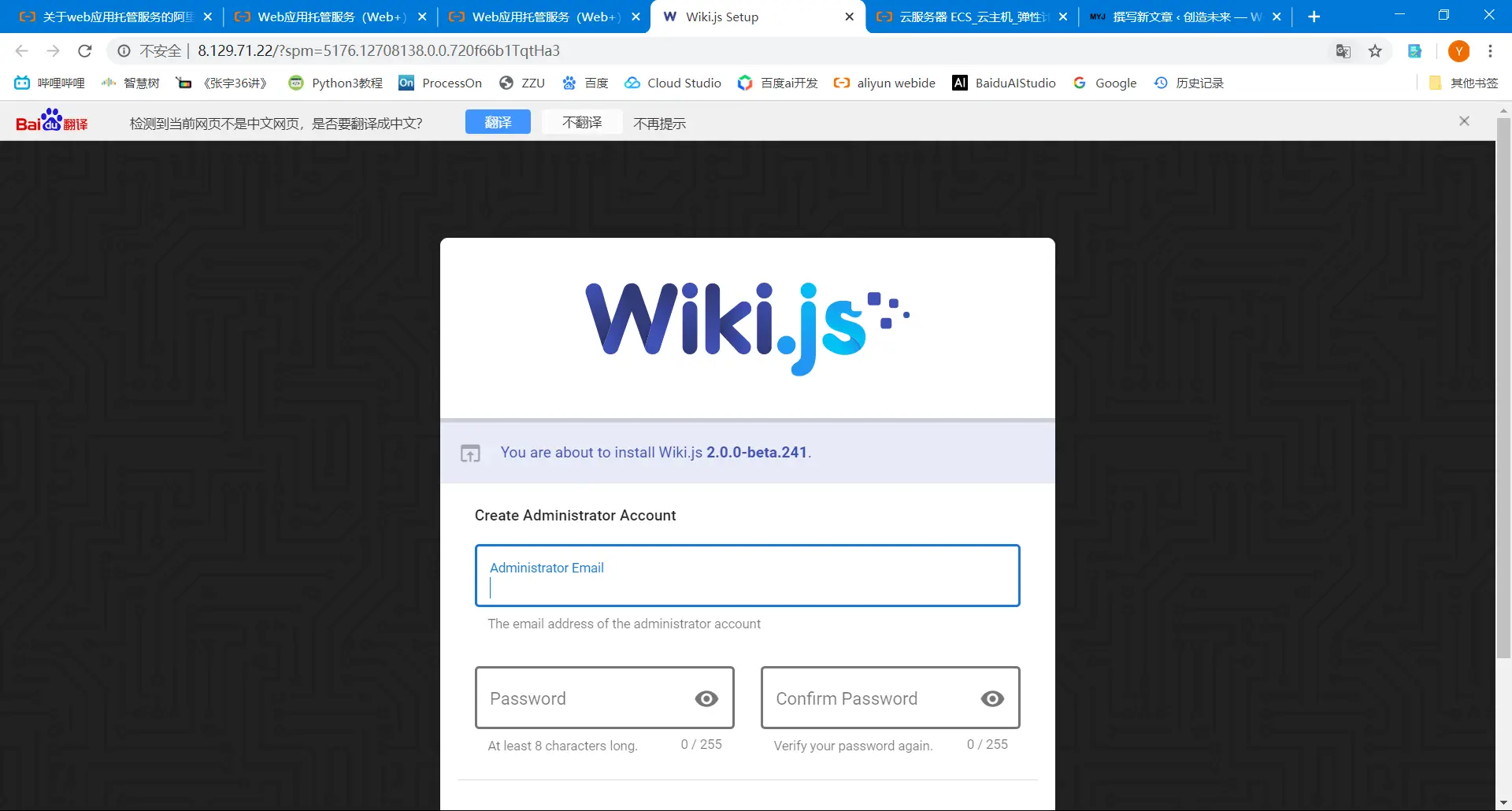 3.8创建好后,和刚才一样点击公网访问地址,就进入wiki.js后台了。
