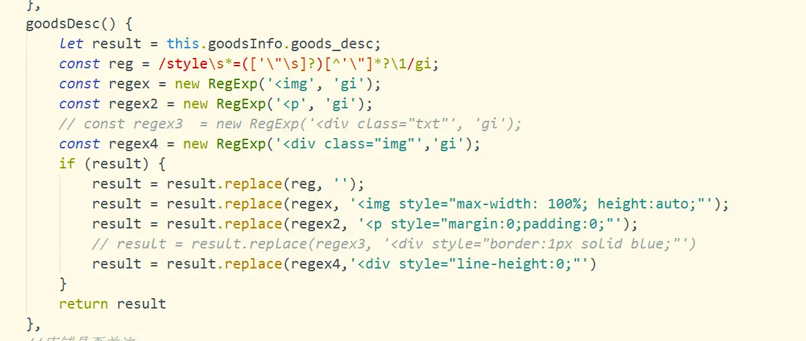,找了原因是通配符设置了line-height=1.8,因此后端返回的图片每张都会继承line-height=1.8因此需要用正则表达式来匹配后端返回的数据,将每张图片单独设置line-height=0