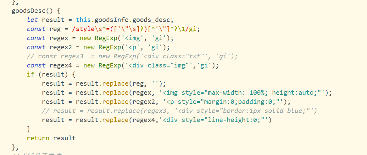 这样处理之后,在渲染的时候,就会单独匹配图片,将图片的line-heigh设置0,商品的详情图片就不会被分割
