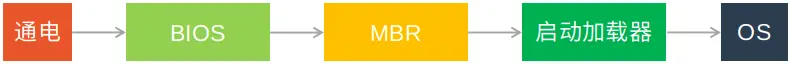计算机系统的启动过程是非常复杂的,也诞生了很多流派,比如BIOS-MBR启动方式、UEFI-GPT启动方式等。不管是哪个流派,广义上的启动过程是类似的,以BIOS-MBR为例,可以简化为如下步骤: