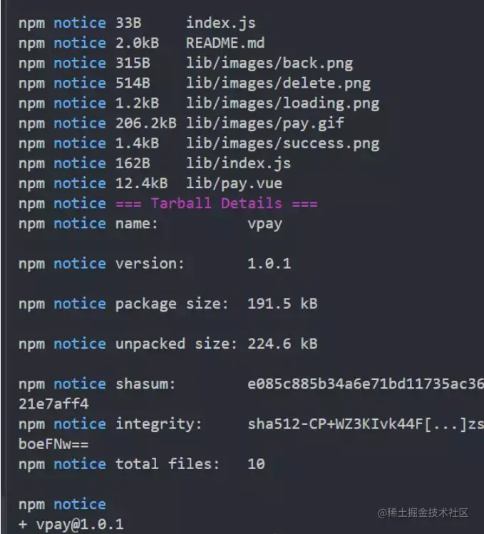 2、npm publish //发布插件发布成功后会显示以下结果。