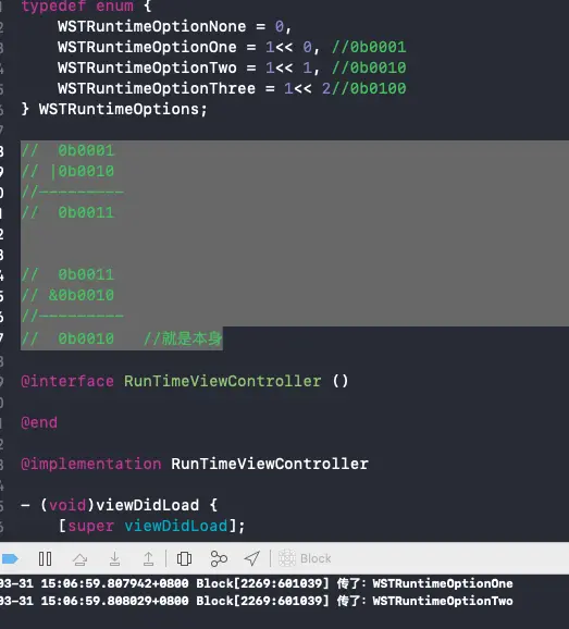 NSLog(@"传了:WSTRuntimeOptionOne");