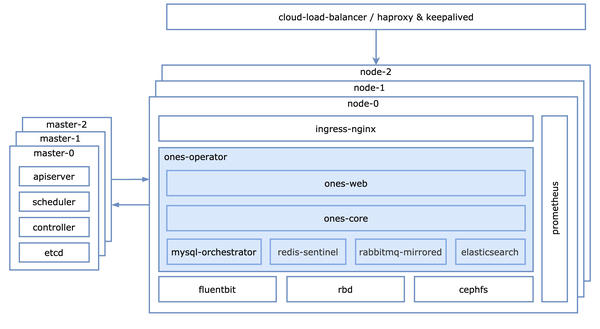 除了选择云厂商的负载均衡服务,ONES 高可用集群还提供基于 ipvs + keepalived + haproxy 的负载均衡方案,合理分配负载,统一对外提供服务。