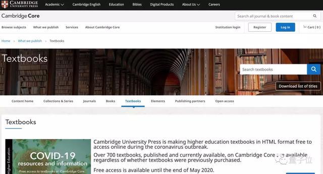 此前,剑桥大学出版社也免费开放了教材下载,提供涵盖21个学科、领域的超700本最新教材。