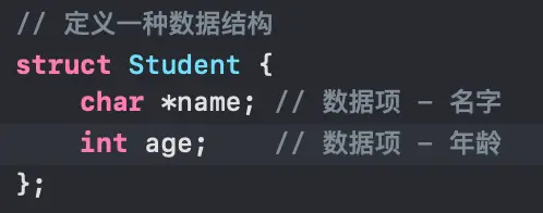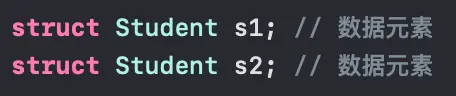 结构体Student就是一种数据结构,定义的name、age是数据项,Student 创建的 s1、s2... 是具体的 数据元素,由多个s1、s2...构成的数组studentArr[10] 即是数据对象