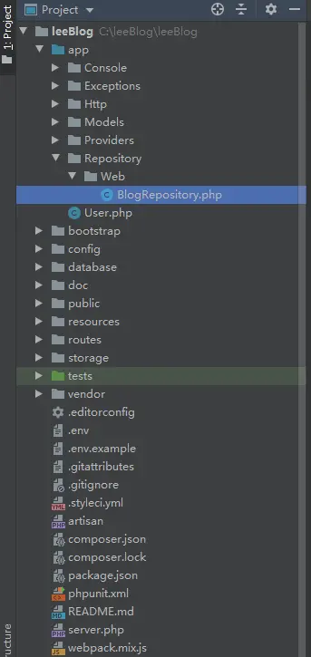 我们约定,model负责映射表,Repository层负责查数据 我们建立BlogRepository,代码如下