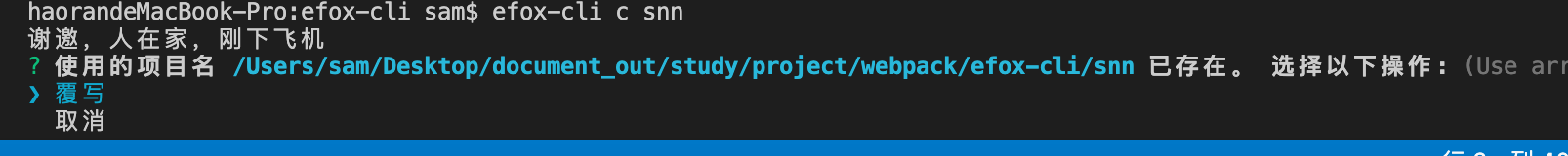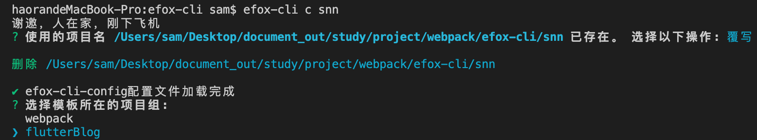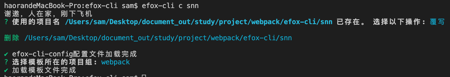 执行 efox-cli c snn,就能拉取对应的脚手架了