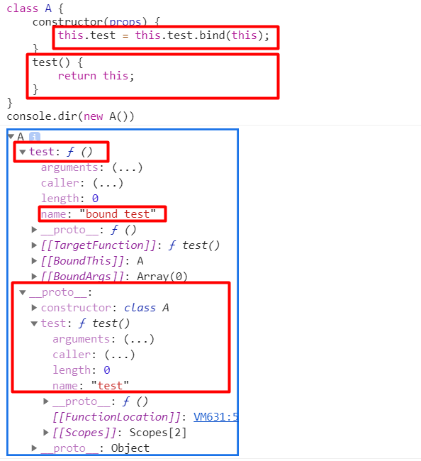 2.原型上的属性是普通的方法,实例(obj)上的属性是此方法调用Function.prototype.bind(obj)返回的bound