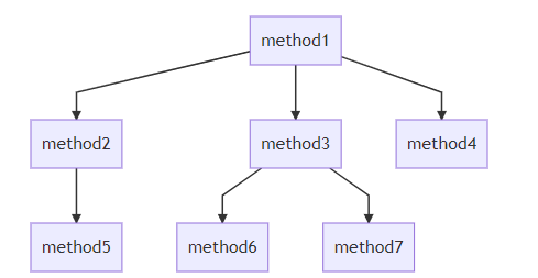 一个方法, 可能被父方法调用, 也可能调用多个子方法. 有上下父子关系, 也要前后兄弟关系.