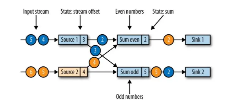 算子状态 (Operator State):顾名思义,状态是和算子进行绑定的,一个算子的状态不能被其他算子所访问到。官方文档上对 Operator State 的解释是:each operator state is bound to one parallel operator instance,所以更为确切的说一个算子状态是与一个并发的算子实例所绑定的,即假设算子的并行度是 2,那么其应有两个对应的算子状态: