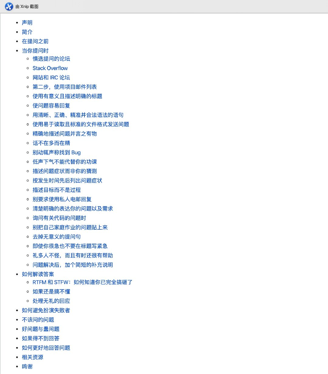 项目地址:https://github.com/ryanhanwu/How-To-Ask-Questions-The-Smart-Way/blob/master/README-zh_CN.md