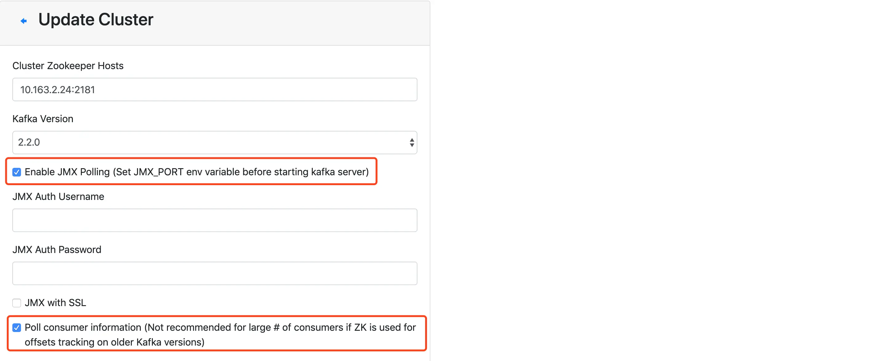 勾选红框部分,前提是 kafka 启动时开启了 JMX_PORT才会生效