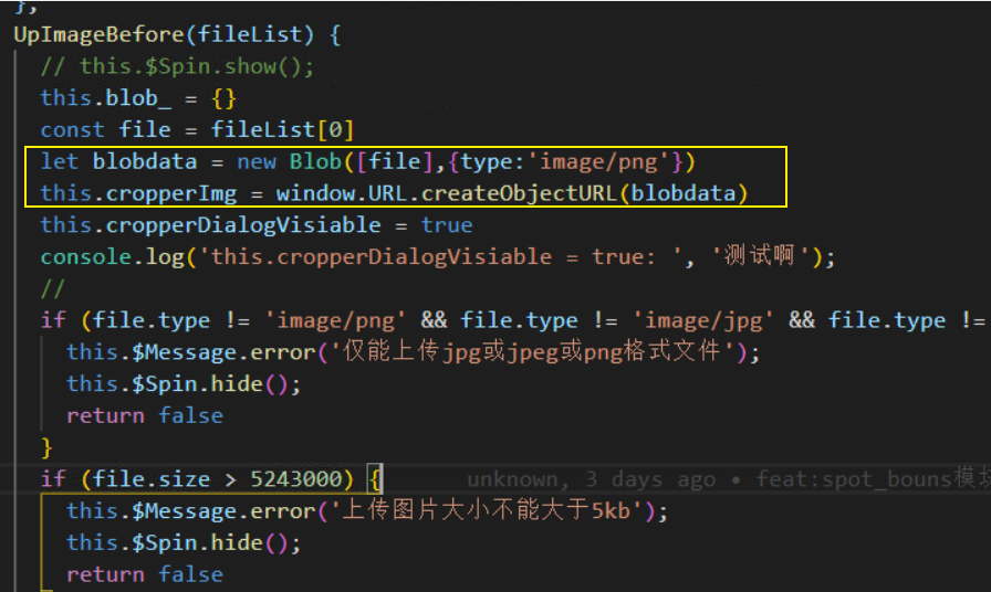 - 至此,我们截完图了,之后需要上传,后端统一接收的是file文件,所以我们要根据图片的Blob生成file类型的文件