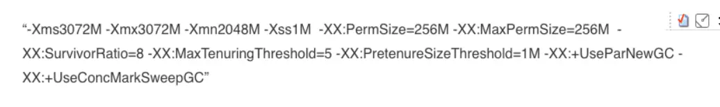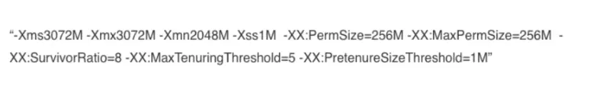 同时大家别忘记了要指定垃圾回收器,新生代使用ParNew,老年代使用CMS,如下JVM参数: