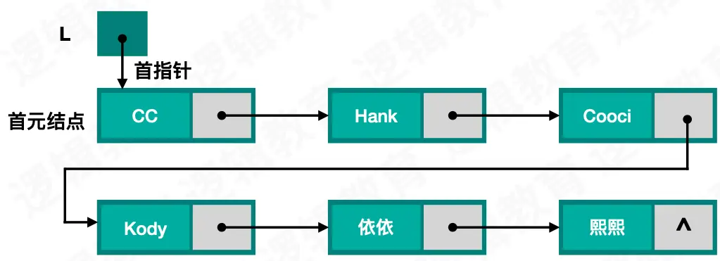 next指向新结点,新节点定义为表终端结点,最后将尾指针的next = NULL代码示例:
