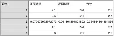 我们在用这个概率带入实验结果当中计算期望,可以得到p1的期望表格: