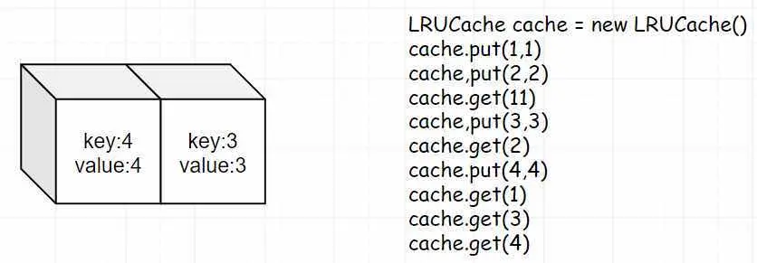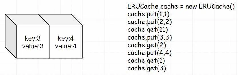 - 第四步:此时我们put(3,3),因为2是最近最少使用的,所以我们需要将2进行作废。此时我们再get(2),就会返回-1。