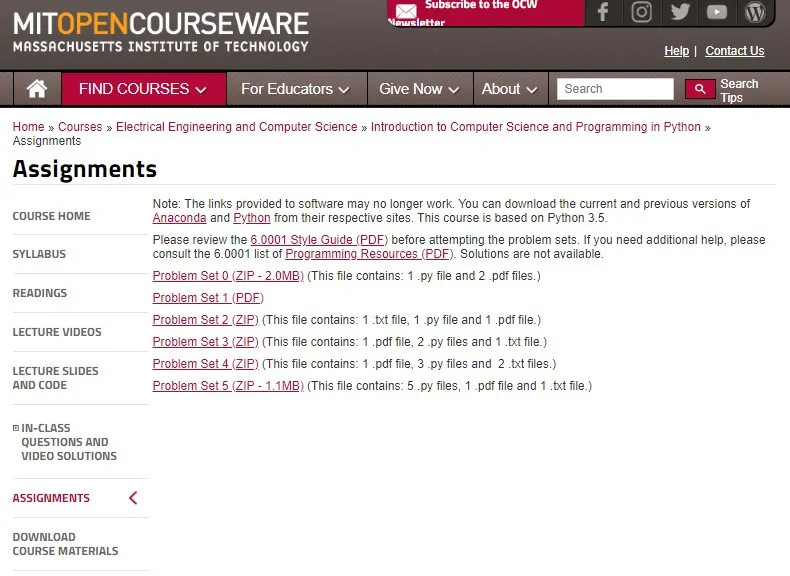 但是,遇到一些技术为主的课程,则需要更多的辅助工具及配套设施才能将课程效果最大化。以现阶段所开放的课程为例,看看 MITOCW 平台所提供的课程都包含哪几部分核心内容: