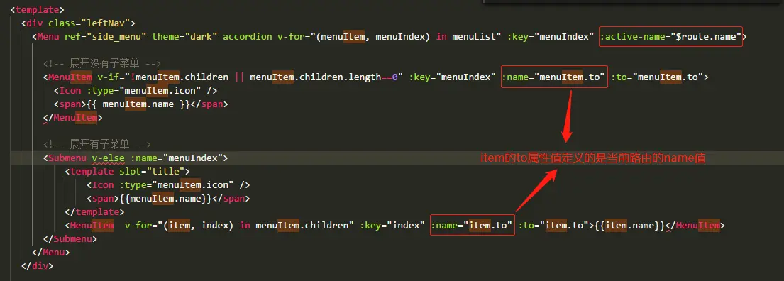 <MenuItem v-if="!menuItem.children || menuItem.children.length==0" :key="menuIndex" :name="menuItem.to" :to="menuItem.to">