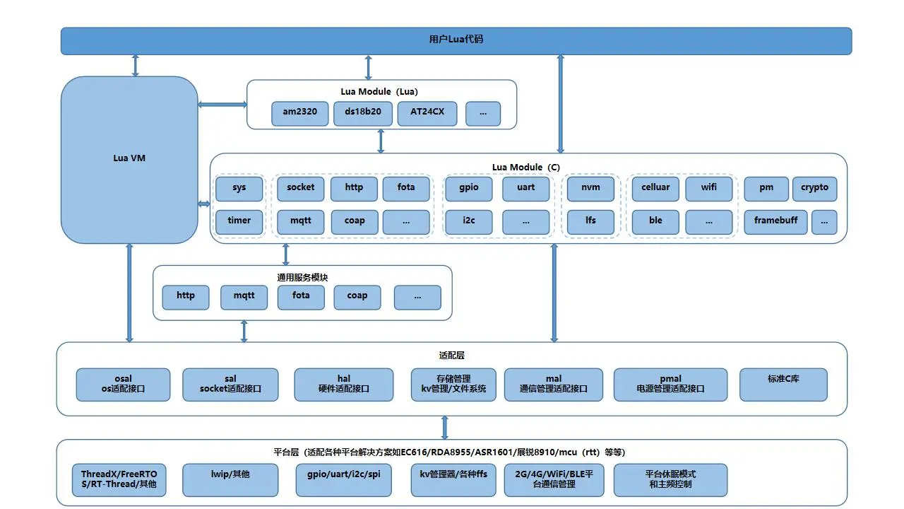 LuatOS 是运行在嵌入式硬件的实时操作系统,只需要少量内存的 flash 空间就能运行,用户编写 lua 代码就可完成各种功能。
