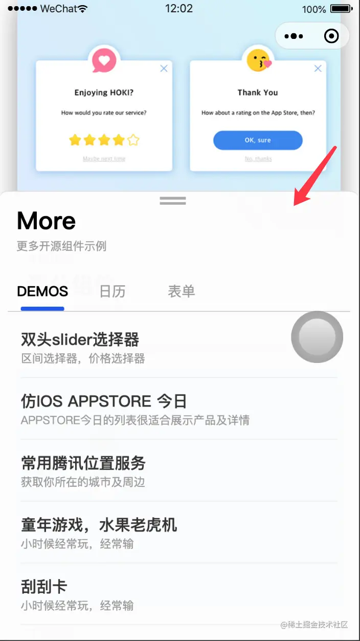 下列小程序DEMO包含下拉菜单、通用型筛选列表、索引列表、markdown(包含表格)、评分组件、水果老虎机、折叠面板、双栏分类导航(左右)、刮刮卡、日历等组件