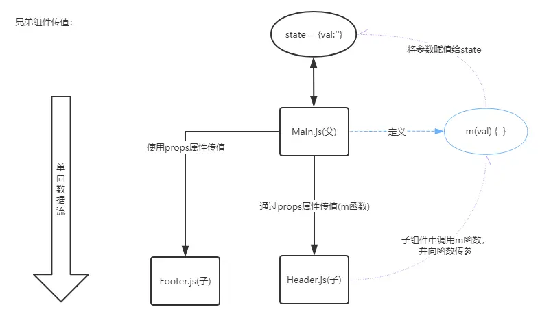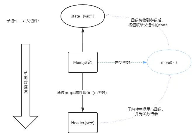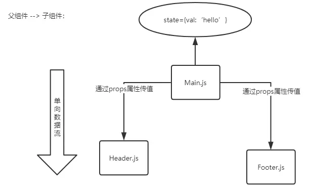 父组件向子组件传值,通过props,将父组件的state传递给了子组件。