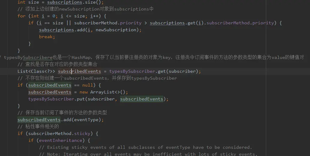 2.1 获取当前注册类对象 对应的 订阅事件方法的参数类型 的集合
