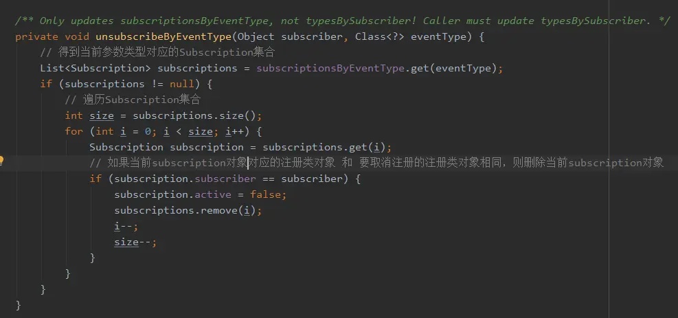 遍历参数类型集合,释放之前缓存的当前类中的Subscription