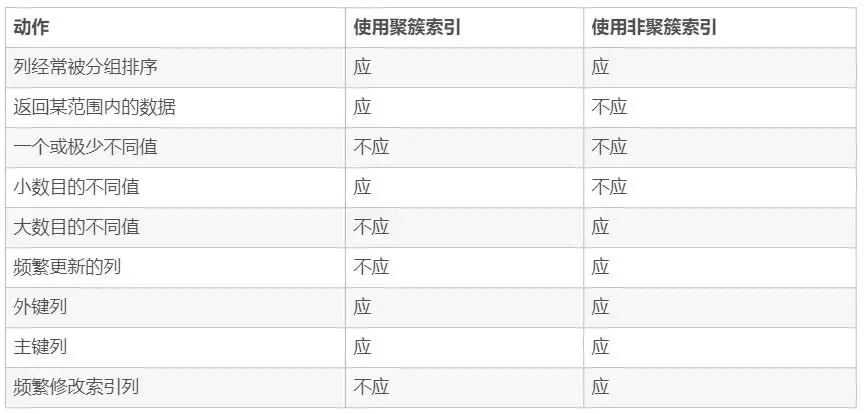 何时使用聚簇索引与非聚簇索引