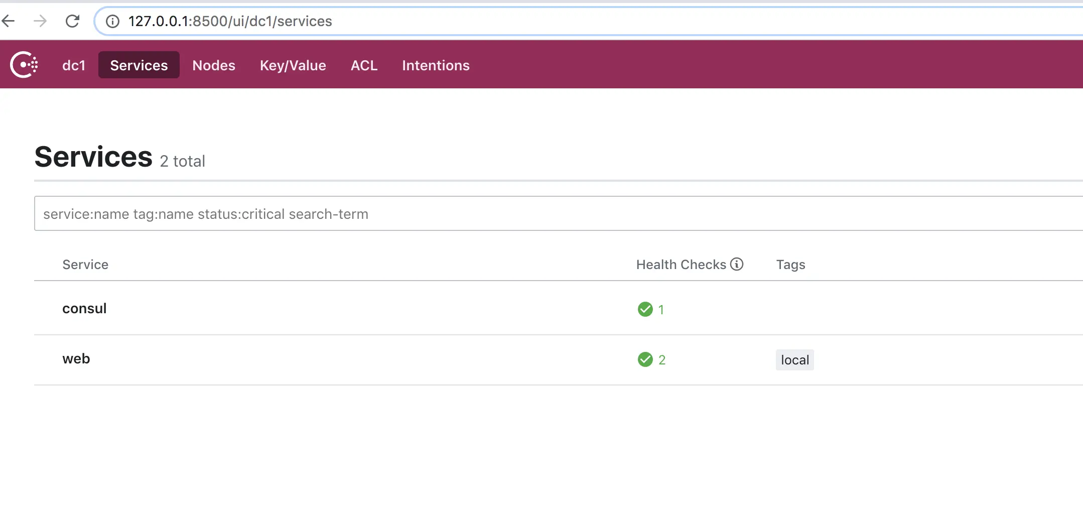 $ curl http://127.0.0.1:8500/v1/catalog/service/web
