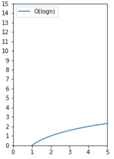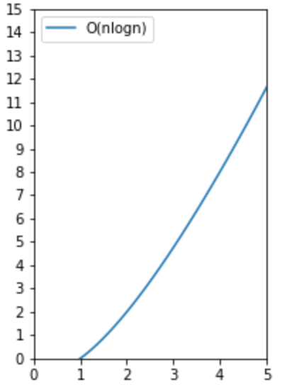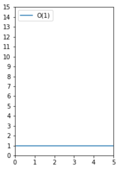 plt.legend(['O(1)','O(n)','O(n^2)','O(n^3)','O(logn)','O(nlogn)'], loc='upper left')