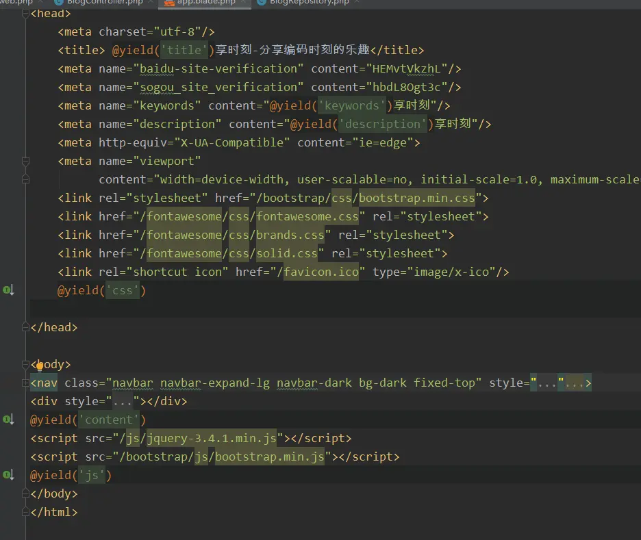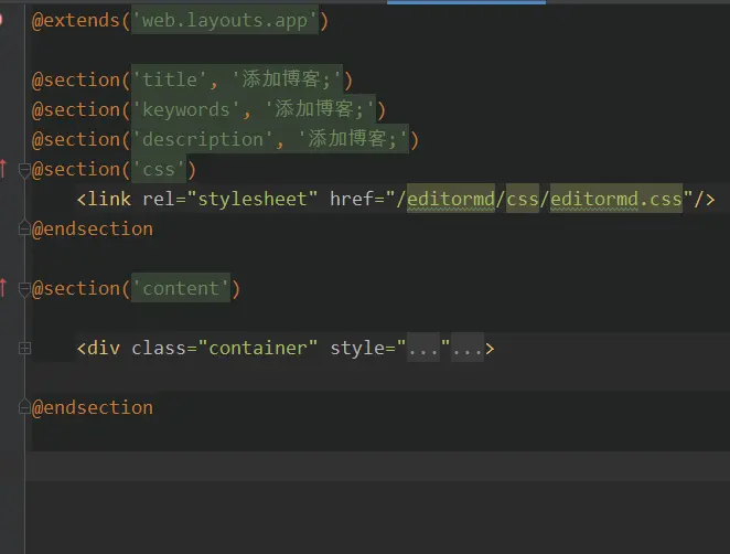 @section('title', '添加博客;')//替换我们@yield('title'),下面雷同