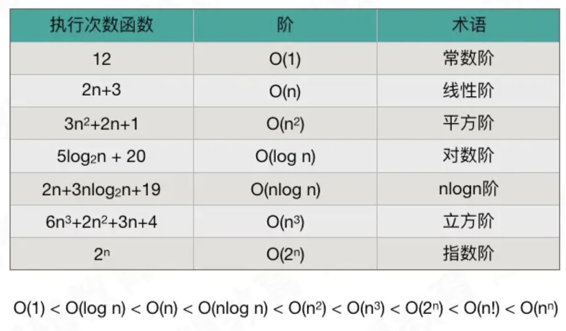 简单来说大O表示法时间复杂度计算会取方程式计算中最大的函数的值,1取代程序中的所以常数值, 时间复杂度术语: