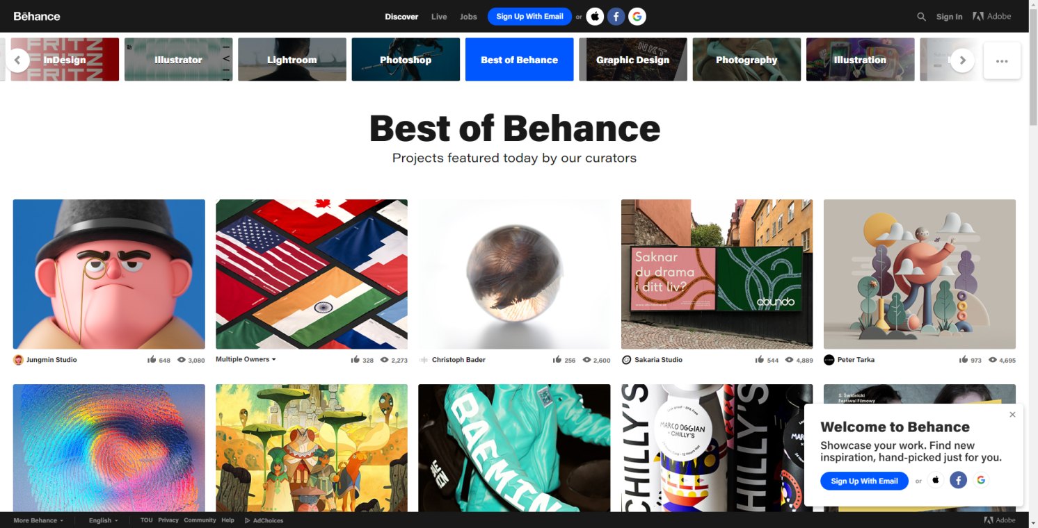 这个被大改的系统名字叫 Behance,是 Adobe 在 15 年发布的一个内容社交平台,有大概 1 千万的用户,在这里人们可以分享自己的创作给百万人看。