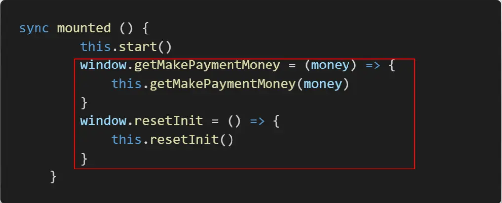 - 以vue框架为例,我们需要在mounted里面将原生需求触发的方法暴露出去