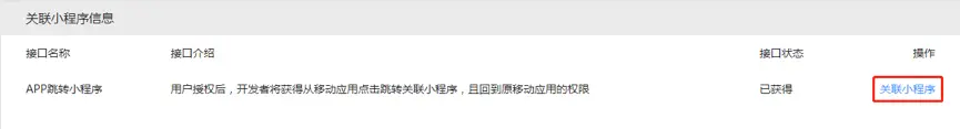 可在“管理中心-移动应用-应用详情-关联小程序信息”,为通过审核的移动应用发起关联小程序操作