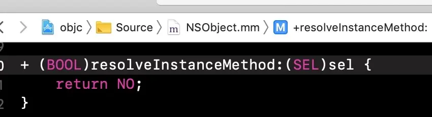 bool resolved = msg(cls, SEL_resolveInstanceMethod, sel);