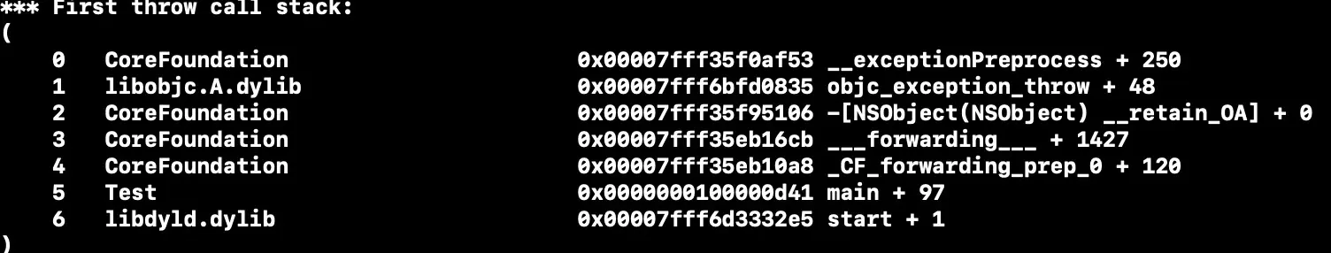 当我们调用一个不存在的方法的时候, 系统肯定会给我们一个崩溃信息: