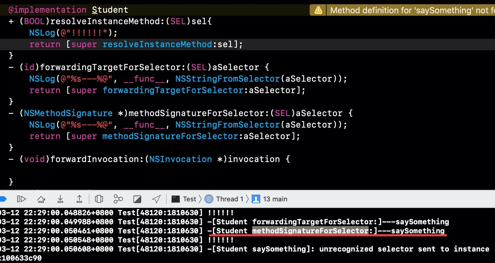 为了防止找不到对应方法造成崩溃, 我们就可以在这里进行一步处理: