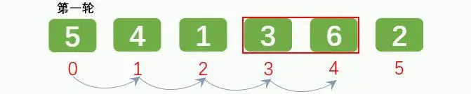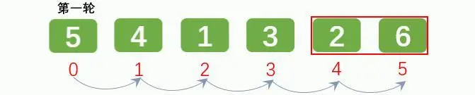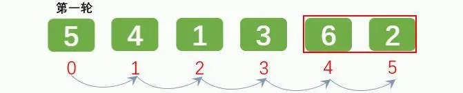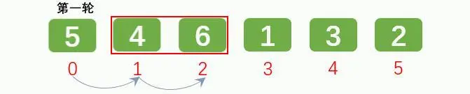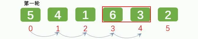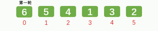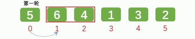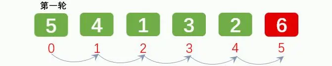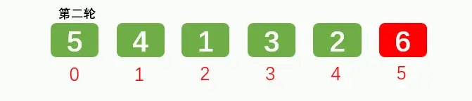 排序1轮后: [5, 4, 1, 3, 2, 6]