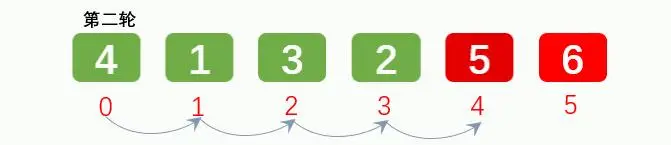 排序2轮后: [4, 1, 3, 2, 5, 6]