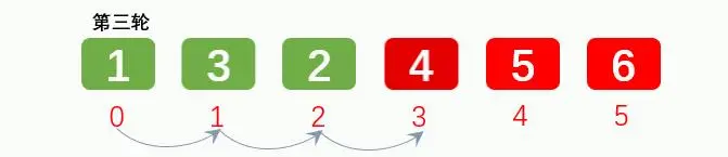 排序3轮后: [1, 3, 2, 4, 5, 6]