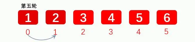 第五轮比价元素1和元素2,这两个元素本身已经有序了,所以没有变化,最终第五轮交换后的结果和第四轮一样:
