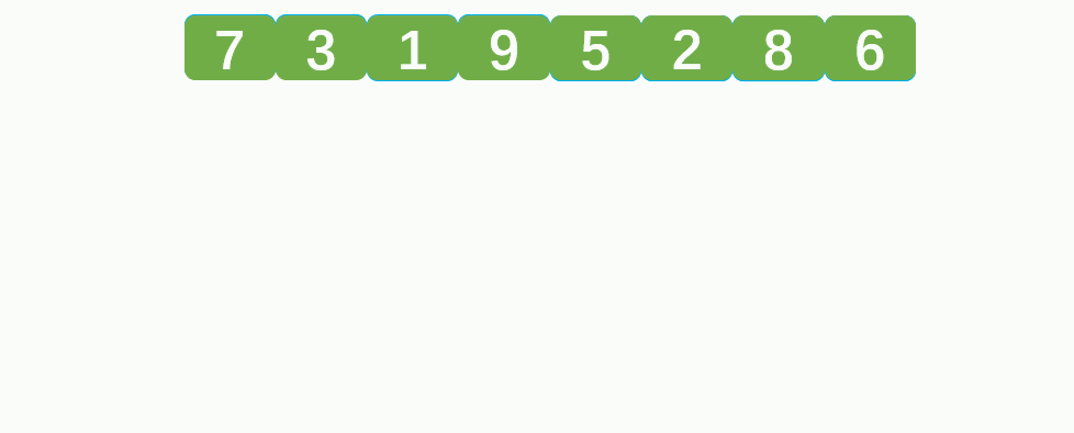 数组由{7, 3, 1, 9, 5, 2, 8, 6} 这8个无序元素组成。