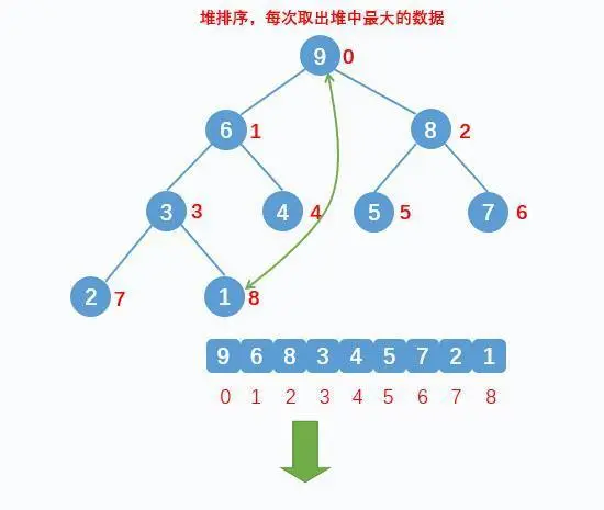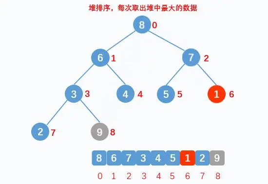 // 让堆顶元素和堆最后一个元素交换,其实就是数组最前面数据,和后面的数据交换