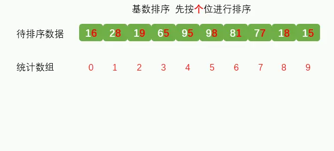 通过上面动画可以看出基数排序就是将数字按位分割,每一位进行一次计数排序,最终完成排序。