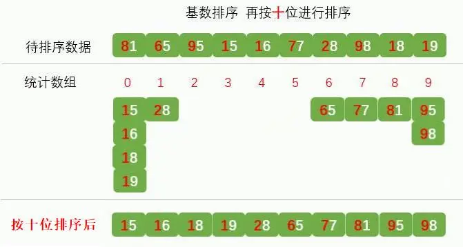 基数排序(Radix Sort)是计数排序的扩展,它的基本思想是:将整数按位数分割成不同的数字,然后按每个位数分别比较。