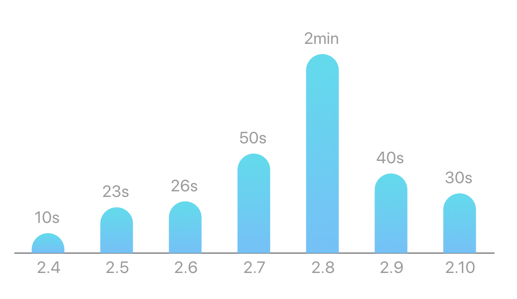 <Bar isAnimationActive={!isEmpty} dataKey="time" fill="url(#abc-bar-gradient)" barSize={32} shape={<CustomBar />} label={<CustomLabel />}/>代码与修改思路也类似,有问题用 DevTools 跟踪一波,再给文字自定义格式化一下(这里抽象成了 getStudyTime 函数)。