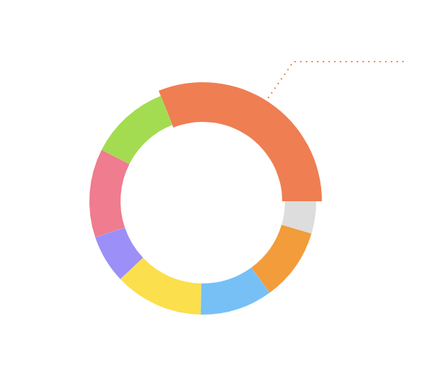 <PieChart width={480} height={400}> <Pie data={data} dataKey="value" cx={200} cy={200} innerRadius={58} outerRadius={80} paddingAngle={0} fill="#a08bff" stroke="none" > {data.map((entry, index) => ( <Cell key={`cell-${index}`} fill={entry.color} /> ))} </Pie></PieChart>得到圆环: